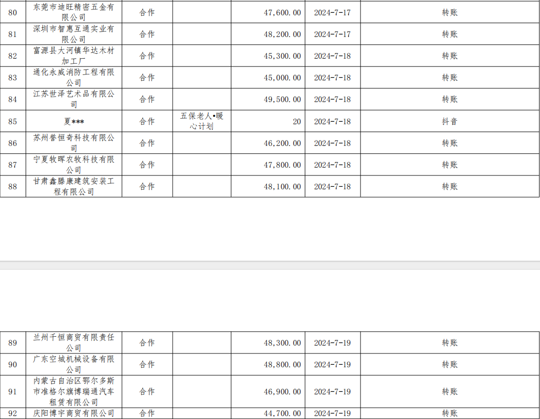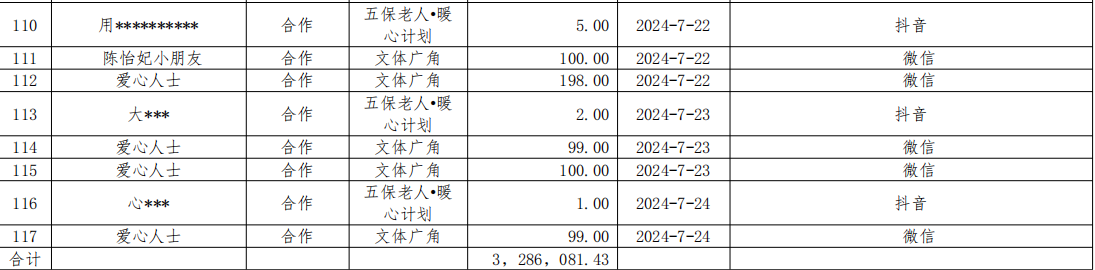 截图为本基金会第三季度线上和线下接受捐赠明细